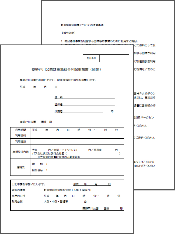 学校関係及び10名以上で来園される団体の場合は、前日までに団体利用受付表のご提出をお願いいたします。 また、大型バスの駐車場をご利用の際も事前にお知らせください。