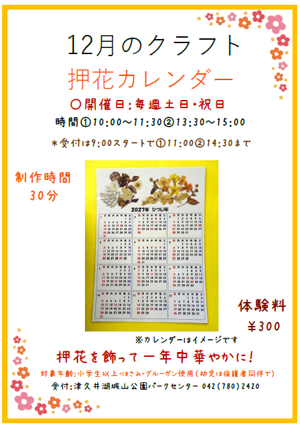 ◇申込み:実施日の1ヶ月前まで。パークセンターにて受付。