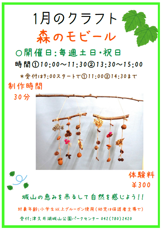 津久井湖城山公園では、里山として利用されてきた里山の自然素材を活かし、様々なクラフト体験を提供しています。