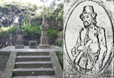 ※写真の左側が「按針塚」で、右側が「ウイリアム・アダムスの木版画」です。